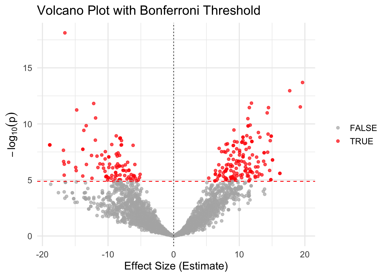 labs(title = "Volcano Plot with Bonferroni Threshold",